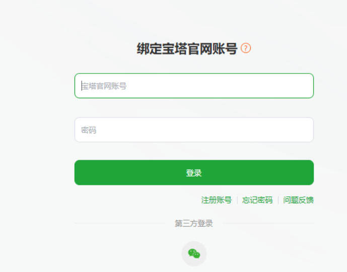 这时候,就该使用我让大家在登录Bt.cn时,注册的账号密码啦,把宝塔网站注册的信息填入到以上录入框中。