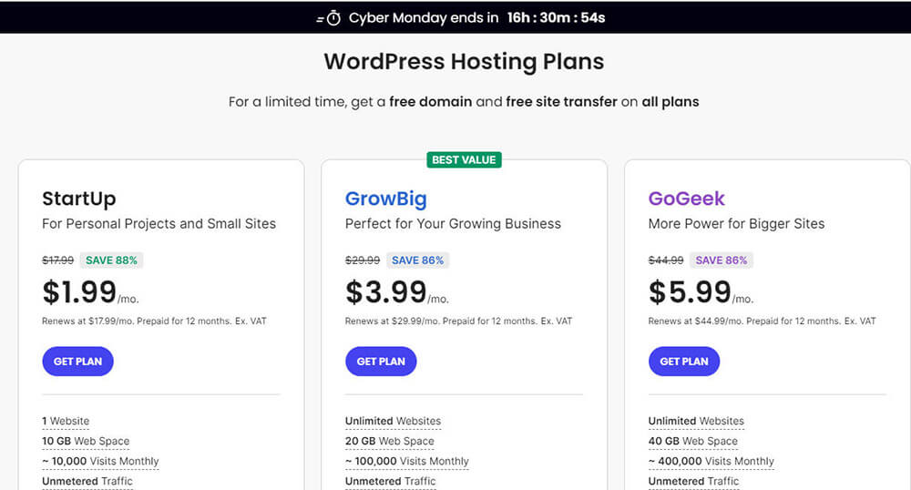 经过我反复横跳测试,强烈安利GrowBig这个“性价比之王”!它比基础版多了超级实用的按需备份、暂存环境功能,网站数量还不限制。我算过一笔账:如果单独购买这些功能插件,每年至少要花200美元,而现在只要多付2美元月费就能搞定,这波不亏!