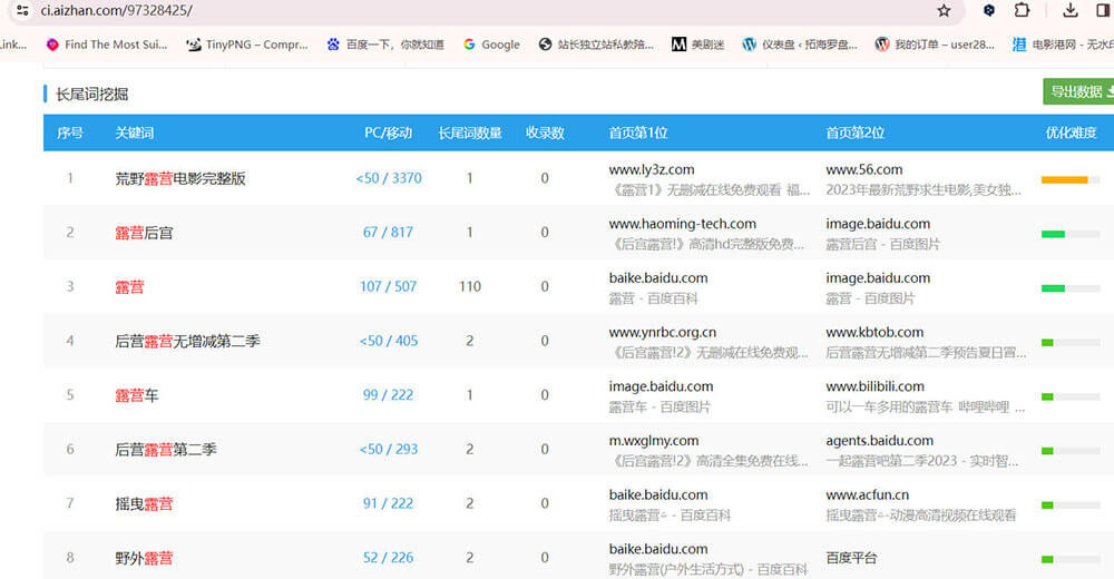 站长之家(爱站网)我也常用,主要是查基础数据方便。它的“关键词挖掘”和“长尾词挖掘”属于基本功扎实的类型。我一般用5118挖深度,用站长之家做补充验证。它还有个挺好的功能是“百度指数”,虽然现在指数数据没以前那么直观了,但看个趋势还是可以的。比如“露营”这个词,每年三月份开始飙升,持续到十月。那你写露营相关文章,一月份二月份就可以开始准备,三月份发,正好赶上大家开始搜索的时候。