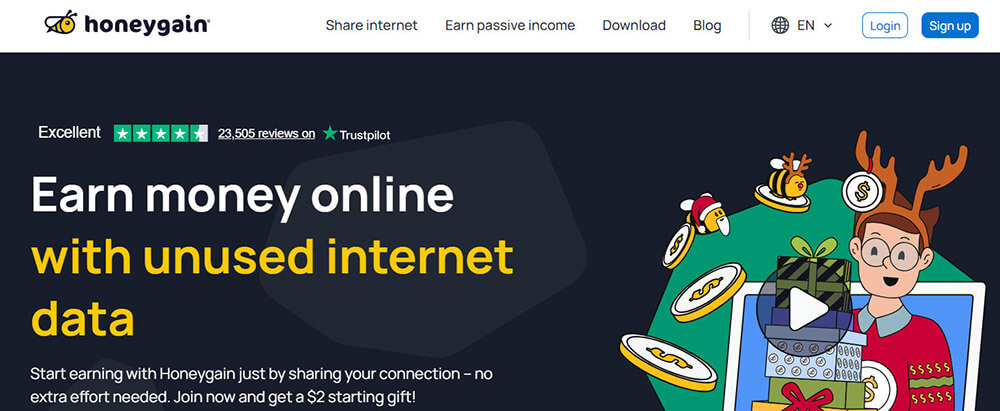 Honeygain 是我最常推荐的新手入门平台。安装简单,支持Windows、Mac、Android甚至树莓派。它通过你的IP提供网络代理服务,每GB流量约0.1美元。我用一台旧笔记本挂了三个月,平均每月赚15-20美元,全部成功提现到PayPal。如果你想了解“Honeygain怎么赚钱”,核心就是:保持设备在线,让它自动上传带宽,系统按流量计费,无需点击或操作。